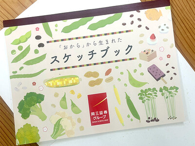 廃棄予定だった「おから」を井村屋グループよりご提供いただき、「紙」として新たな価値を持って誕生したのがおからのスケッチブックです。岡三証券グループ・発祥の地である三重県の「地域産業とのつながりを通じて、子どもたちへ還元したい」という想いが込められています。