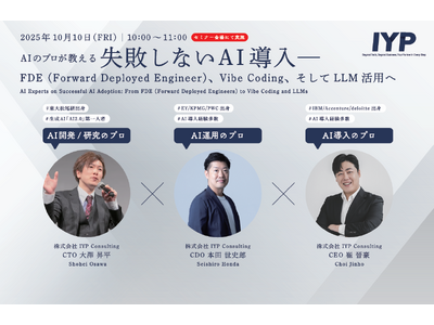 株式会社I.Y.P Consulting(以下、IYP)は、2025年10月8日(水)~10日(金)に幕張メッセで開催される「NexTech Week 2025[秋]/AI・人工知能EXPO」に出展し、現場に常駐して成果創出まで伴走するFDE(Forward Deployed Engineer)と、自然言語中心の超速プロトタイピング手法「Vibe Coding」、そして軽量エージェントAI/LLM活用を組み合わせた“失敗しないAI導入”の具体策を発表します。会期は10:00~17:00、会場は幕張メッセです。[主催:RX Japan]。
