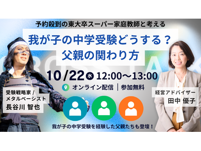 本イベントでは、20年以上にわたり受験生とその家族に向き合い支援してきた受験戦略家・長谷川智也氏を迎え、中学受験の最新動向や家庭・学校における変化、さらに成功・失敗の実例を交えながら、父親が果たすべき役割を共に考えます。