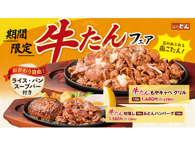株式会社アークミール(本社:埼玉県さいたま市、代表取締役社長:柳 先)が運営するステーキレストラン「ステーキのどん」では、【牛タングリルフェア】を2025年10月1日(水)より関東地域48店舗で開始いたします。