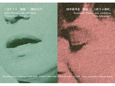 この度、アートギャラリー「COPYCENTER GALLERY」(東京・板橋、運営:株式会社PHOTOPRI)は、2025年10月2日(木)から10月7日(火)まで、三苫ケイトによる個展「二拠点の声」と、田中茜乃介による個展「二つ折りの部屋」を同時開催します。