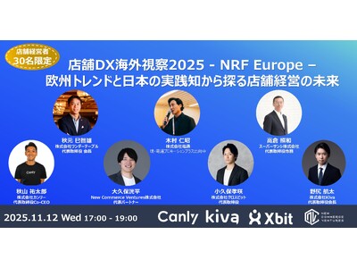 株式会社Kiva(本社:東京都中央区、代表取締役:磯崎 裕太)は、株式会社カンリー、株式会社クロスビット、New Commerce Ventures株式会社と共に、2025年11月12日(水)、小売・外食業の経営層を対象とした限定イベント「店舗DX海外視察2025 - NRF Europe - 欧州トレンドと日本の実践知から探る店舗経営の未来」を共同開催いたします。