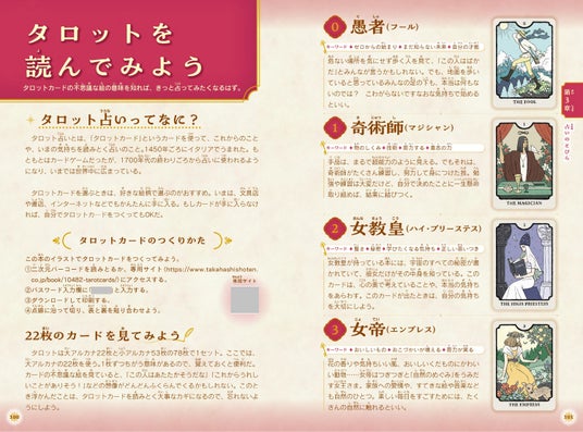 ダウンロードできるタロットカードがついているので、本を読みながら実際に占うことができます。