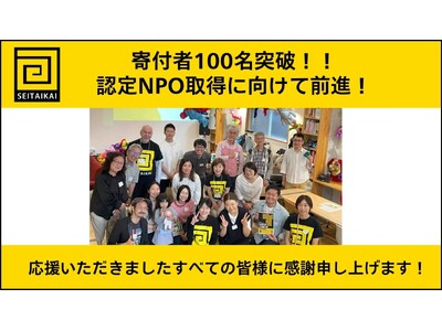 認定NPO法人として求められる条件のひとつが「100人以上の寄付者を2年間集めるなど、社会から広く支持を得ていること」です。今回の100名達成は、その第一歩として大きな意味を持ちます。