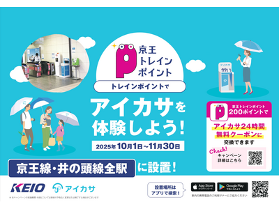 雨の日を快適にハッピーにする傘のシェアリングサービス「アイカサ」を運営する株式会社Nature Innovation Group(本社:東京都新宿区、代表取締役:丸川照司、以下「アイカサ」)は、京王電鉄株式会社(本社:東京都多摩市、代表取締役社長:都村智史、以下「京王電鉄」)と連携し、2025年10月1日(水)から11月30日(日)までの期間限定で、京王電鉄が提供する「京王トレインポイント」を「アイカサ」のクーポンと交換ができるキャンペーン(以下「本キャンペーン」)を開催いたします。