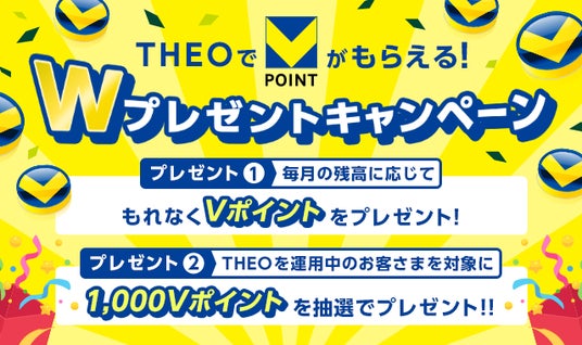SMBC日興証券は10月1日(水)より「THEOでVポイントがもらえる!Wプレゼントキャンペーン」を実施いたします。