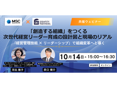 本ウェビナーでは、株式会社マネジメントサービスセンター(MSC)とアイデンティティー・パートナーズ株式会社との共催により「創造する組織をつくる、次世代経営リーダー育成の設計図と現場のリアル」と題し、データや実際のアセスメント結果、そして企業事例を元に、次世代経営リーダー育成を成功に導く考えをお伝えします。