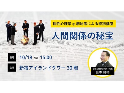 個性心理學(R)の創始者、弦本將裕氏を講師にお招きします。本講座は事前申込制、ご参加される方全員に特別特典を贈呈いたします。