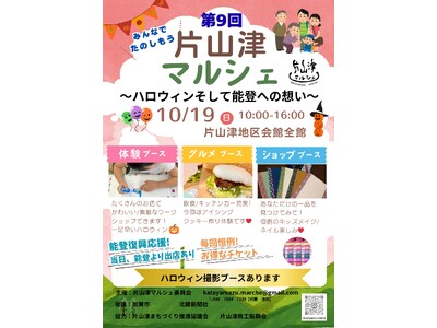 加賀市片山津温泉で人気の「片山津マルシェ」。町おこしにぎわい創出をコンセプトに、一住民が立ち上げたマルシェが、今年9回目を迎えます。今年は「ハロウィン」と「能登の復興応援」をテーマに、全46店舗が出店。能登からの出店もあります!体験・グルメ・ショップなど、親子で楽しめる内容が揃っています。
