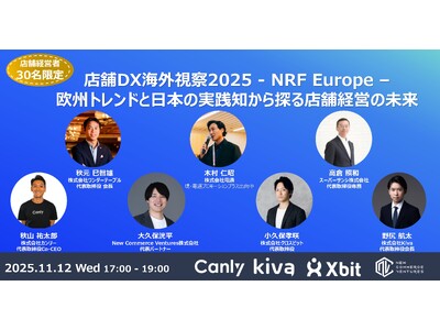 「シフト」を切り口に「働く体験」の価値の最大化を目指す株式会社クロスビット(本社:東京都千代田区、代表取締役:小久保孝咲)は、株式会社カンリー(本社:東京都品川区、代表取締役:辰巳 衛/秋山 祐太朗、以下 カンリー)、株式会社Kiva(本社:東京都中央区、代表取締役社長:磯崎航太、以下Kiva)、New Commerce Ventures株式会社(本社:東京都品川区、代表取締役:松山 馨太・大久保 洸平、以下New Commerce Ventures)と共催で、2025年11月12日(水)、小売・外食業の経営層を対象とした限定イベント「店舗DX海外視察2025 - NRF Europe - 欧州トレンドと日本の実践知から探る店舗経営の未来」を共同開催いたします。
