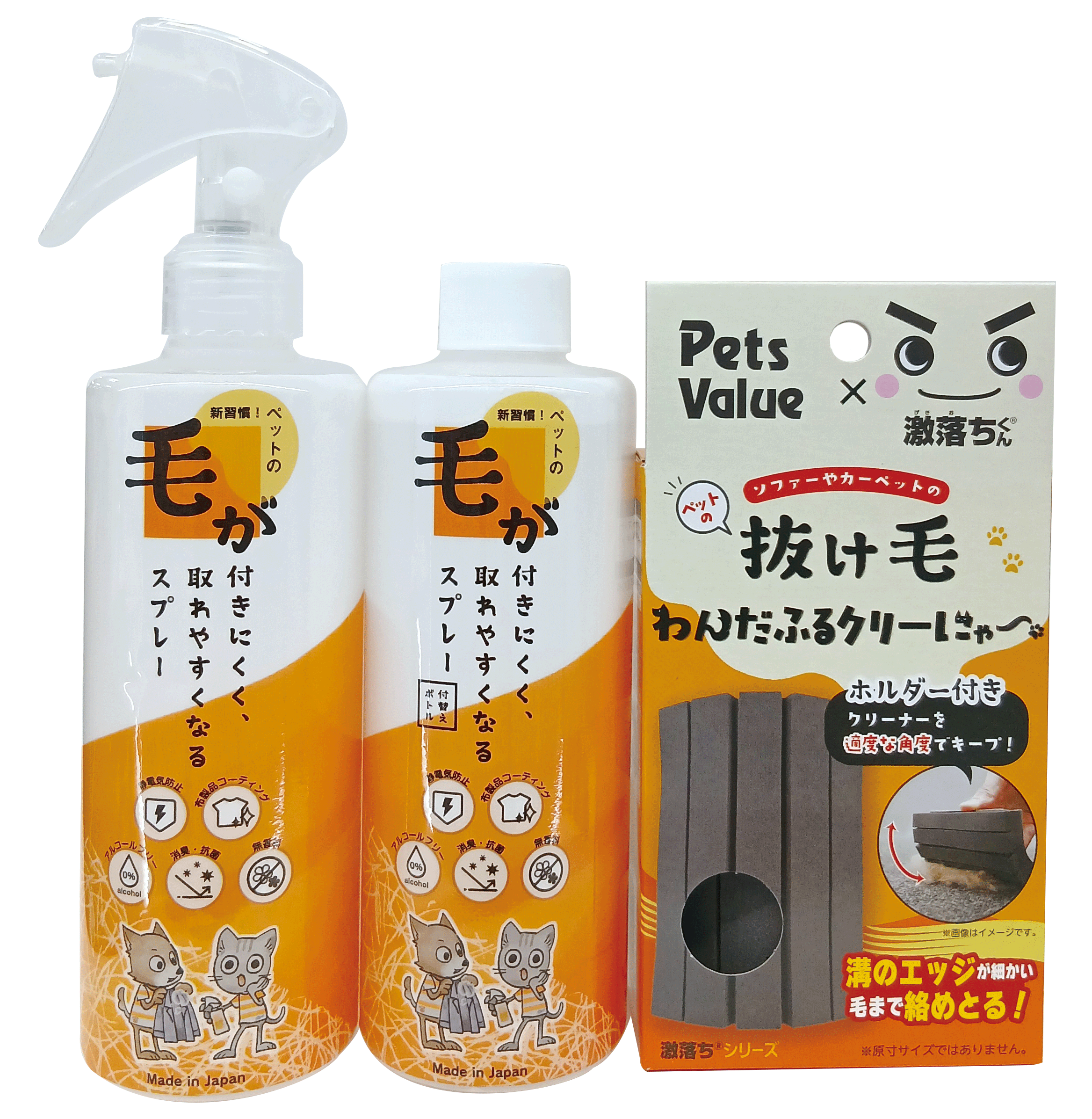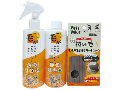 また、ペットオーナーの多くが「抜け毛(67.7%)」を日常の悩みとして挙げている調査結果を受け、スプレーと合わせて使える抜け毛対策ツールとして「わんだふるクリーにゃー」を共同開発しました。