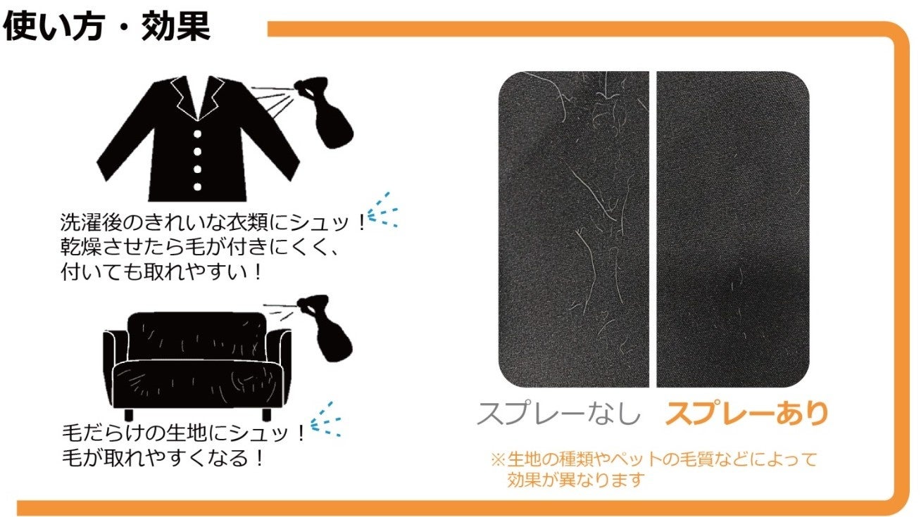 1. 毛が付きにくく、取れやすくなるスプレー(リニューアル・付替え用発売)