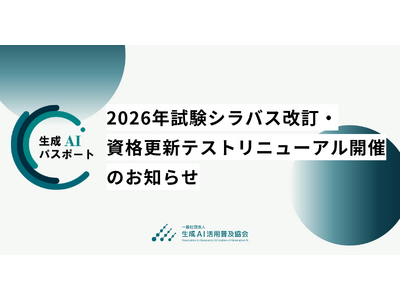 生成AIの目覚ましい発展に伴い、全てのビジネスパーソンに求められるリテラシー・スキルは変化していきます。生成AIを安全に活用するためには、その変化に対応した最新情報をキャッチアップし、継続的なリスキリングに取り組むことが重要です。このような考えのもと、生成AIパスポートは、毎年2月を基本として年1回以上の頻度でシラバスの改訂を行っています。この度、2026年2月開催の試験より適用するシラバスの改訂内容を決定しましたので、公開いたします。また、これに伴い、新シラバスに対応した「生成AIパスポート公式テキスト 第4版」を2025年10月1日(水)より販売開始いたします。