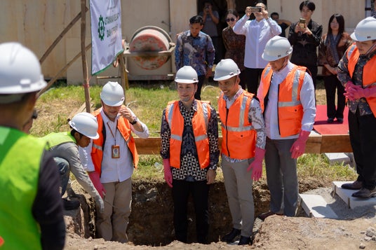 インドネシアの伝統にのっとり礎石を配置し、竣工までの安全を祈願