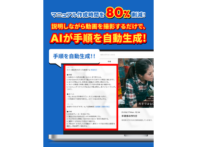 動画を撮影しながら説明するだけで、AIが自動的に手順を生成。マニュアル作成にかかる作業を大幅に効率化できます。