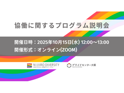 認定NPO法人虹色ダイバーシティ(所在地:大阪市北区、理事長:村木 真紀、以下「虹色ダイバーシティ」)は、2025年10月15日(水)に、企業のLGBTQ施策ご担当者を対象とした「協働に関するプログラム説明会」をオンラインで開催します。