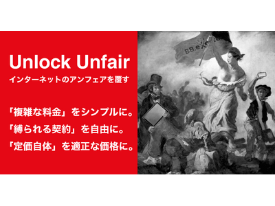 「Unlock Unfair - インターネットのアンフェアを覆す」をコンセプトとし、アンフェアに複雑な契約に縛られたインターネットユーザーの新たな選択肢として、 誰もがわかりやすく選びやすいインターネットサービスを提供します。