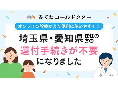 オンライン診療アプリ「みてねコールドクター」、埼玉県・愛知県在住の方の還付手続きが不要に