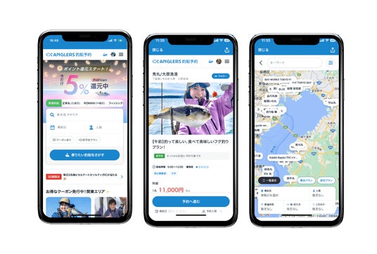 釣りアプリ「ANGLERS(アングラーズ)」の情報を活用し、釣船やチャーターボート、渡船の予約がスマホで簡単にできるサービスです。釣りアプリ「ANGLERS」は17秒に1回釣果が投稿される釣り専用のSNSです。月間100万人以上のユーザーが訪れ、釣果情報の投稿や、釣り情報のコミュニケーションの場として活用されています。