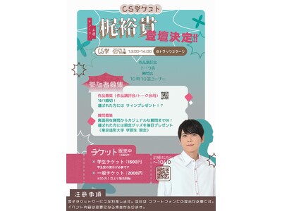 「東京造形大学CS祭スペシャルゲスト 梶裕貴 作品講評&トークステージ」が2025年10月18日(土)に東京造形大学 敷地内芝生(トラックステージ)にて開催されます。チケットはイベントプラットフォーム「TIGET」にて販売中です。