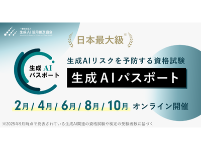 生成AIを社会に実装し、産業の再構築を目指す一般社団法人生成AI活用普及協会(理事長:井畑 敏、所在地:東京都港区、以下:GUGA)は、生成AIリスクを予防する日本最大級(※)の資格試験「生成AIパスポート」について、2026年より試験の開催回数を年5回へと拡大することをお知らせいたします。