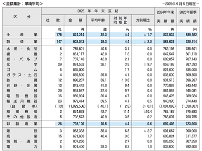 調査対象のうち、調査時点で2025年年末賞与・一時金を妥結・決定しており、「2025年年末」「2025年夏季」「2024年年末」の三者の金額または月数が把握できた企業(組合)