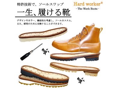 『The Work Boots』は、Hard Worker(R)のフラッグシップモデルで、特許技術でソールを自由に交換できて、『一生、履けるワークブーツ』です。
