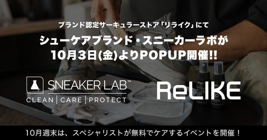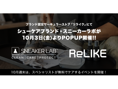 Free Standard株式会社(本社:東京都渋谷区、代表取締役社長:張本貴雄)が運営するブランド認定サーキュラーストア「ReLIKE(リライク)」渋谷店にて、株式会社ビーズインターナショナル(本社:東京都目黒区、代表取締役社長:西方雄作)が展開するシューケアブランド『SNEAKER LAB(スニーカーラボ)』のPOPUPを開催いたします。