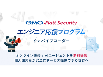 GMOインターネットグループで「エンジニアの背中を預かる」をミッションに、プロダクト開発組織に向けたサイバーセキュリティ関連事業を展開するGMO Flatt Security株式会社(代表取締役社長:井手 康貴 以下、GMO Flatt Security)は、2025年10月2日(木)より、「GMO Flatt Security エンジニア応援プログラム for バイブコーダー」を開始します。2025年9月1日に募集を開始した「GMO Flatt Security エンジニア応援プログラム for スタートアップ」に続くセキュリティ支援の第二弾となります。