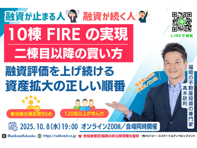 株式会社セイコー・エステート&ディベロップメント(本社:福岡市、代表取締役:高木政利)は、2025年10月8日(水)19時に不動産投資の無料セミナー