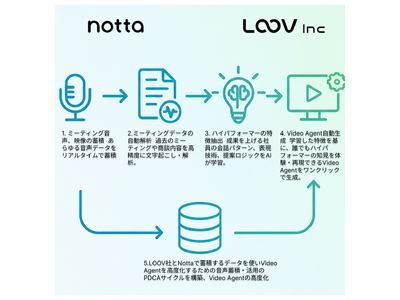 Notta株式会社(本社:東京都千代田区、代表取締役:Ryan Zhang、以下Notta)と株式会社LOOV(本社:東京都目黒区、代表取締役CEO:内田雅人、以下LOOV)は、新サービス開発を見据えて協業を開始します。LOOVが提供するVideo AgentにNottaのAI議事録作成機能を組み込み、精度が高いVideo Agentの自動生成にチャレンジしてまいります。