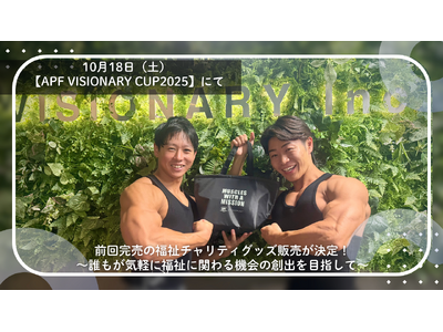 障害福祉サービスを運営する株式会社VISIONARY(代表取締役社長/丹羽悠介、本社:愛知県名古屋市)は、フィットネス団体APFとのコラボレーションによって2025年10月18日(土)に開催するAPF VISIONARY CUP2025にて、福祉支援を目的としたチャリティグッズの販売を実施いたします。