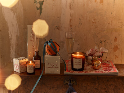 ナチュラルオイルベースのディフューザー、ビーガンフレンドリーなソイワックス100%のキャンドル(220g / 75g)の3アイテム展開。オレンジと華やかで高級感のあるゴールドを基調とした限定パッケージは、イギリスで活躍するイラストレーター キアラ・ペラーノによる水彩タッチのコラボデザインです。また、イラストを切りとって付属のベルベットのリボンを通すとオーナメントに再利用できるサステナブルなパッケージに仕上げています。