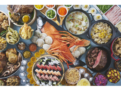 また、土・日・祝日のランチには、紅ズワイガニとトゲズワイガニの2種類を取り揃えた「カニ食べ放題」を同時に開催します。海老とカニを思う存分にお楽しみいただける贅沢なランチビュッフェをお届けいたします。
