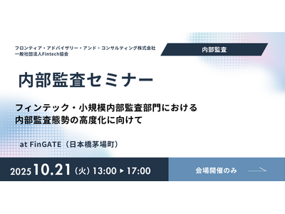 デジタル・ガバナンス領域専門のプロフェッショナルファームであるフロンティア・アドバイザリー・アンド・コンサルティング株式会社(本社:東京都中央区、代表取締役社長:正田 洋平、以下「フロンティア」)は、2025年10月21日(火)に一般社団法人Fintech協会と共催にて内部監査セミナー「フィンテック・小規模内部監査部門における内部監査態勢の高度化にむけて」を開催いたします。