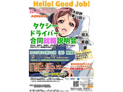千葉県タクシー協会京葉支部では、2025年10月22日(水曜日) 13:00~ 第11回タクシードライバー合同就職説明会を開催します。