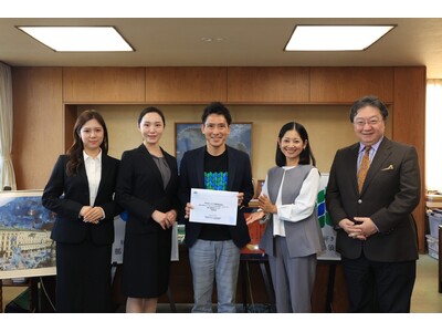 こうした成果を踏まえ、2025年10月2日(木)、当委員会は那須塩原市役所を訪れ、渡辺美知太郎市長を表敬しました。当日は、理事長の池田健三郎、理事の大渕愛子に加え、アドバイザー企業XM株式会社から佐藤文浩社長、泉山優佳取締役、張倩倩広告メディア部部長が参加しました。