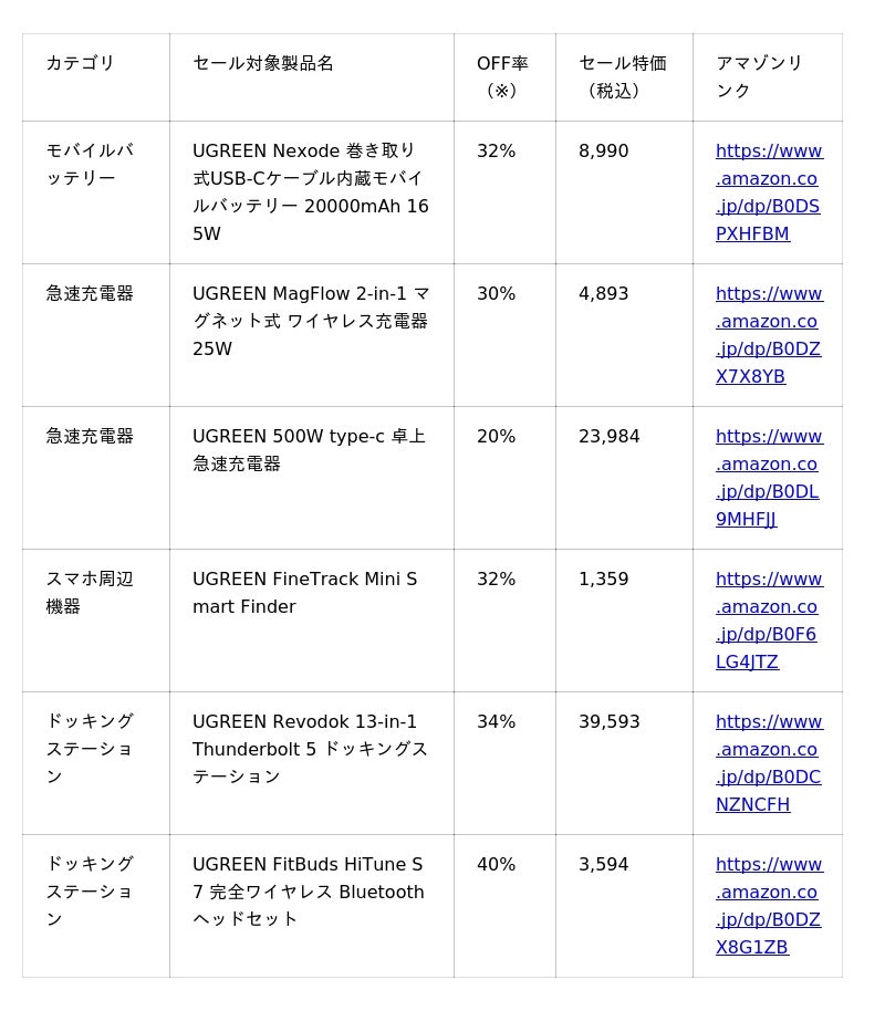 最先端の技術を採用し、信頼性の高いPC・スマートフォン周辺機器を開発・生産しているUGREEN(ユーグリーン)は、2025年10月4日(土)0:00から10月10日(金)23:59まで開催される「プライム感謝祭」にて、人気の急速充電器をはじめとするおすすめガジェットを最大51%OFFにて販売いたします。一部製品は5%OFFクーポンでさらにお得!NASの新製品「DH2300」も予約販売スタート~