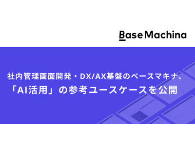 Web事業者様の社内管理画面をはじめとして、社内のERP補完・リプレイスなどにも使えるDX/AX基盤の「ベースマキナ」を提供する株式会社ベースマキナ(東京都中央区、代表取締役社長 高橋誠二)は、当プラットフォームをAIを通じた社内業務改革に繋げるためのユースケースを公開しました。