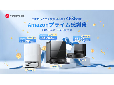 ロボット掃除機やスティック掃除機を製造・開発するBeijing Roborock Technology Co.,Ltd.(本社:中国北京、CEO:Richard Chang)は、2025年10月4日(土)00:00から2025年10月10日(金)23:59まで、Amazonが開催する「Amazonプライム感謝祭 先行セール」および「Amazonプライム感謝祭」に参加し、新たなフラッグシップモデル「Saros 10R」やコンパクトながら高機能モデルの「Qrevo L」をはじめとする人気製品が最大46%オフとなるビッグセールを実施します。
