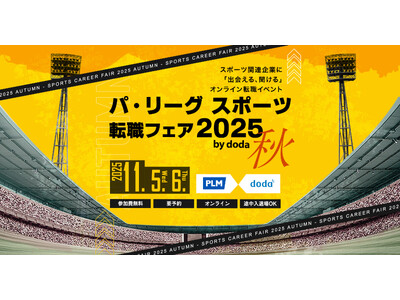 パシフィックリーグマーケティング株式会社(本社:東京都港区、代表取締役CEO:新井 仁)は、2025年11月5日(水)、6日(木)の2日間「パ・リーグ スポーツ転職フェア 2025 秋 by doda」をオンライン上で開催することをご案内いたします。