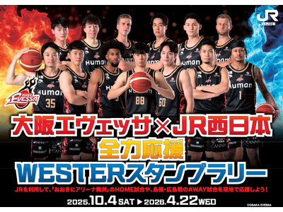 このたび、大阪エヴェッサは、西日本旅客鉄道株式会社(以下、JR西日本)、株式会社ギックス(以下、ギックス)と移動生活ナビアプリ「WESTER」を活用したデジタルスタンプラリー「大阪エヴェッサ×JR西日本 WESTERデジタルスタンプラリー」を実施することとなりました。