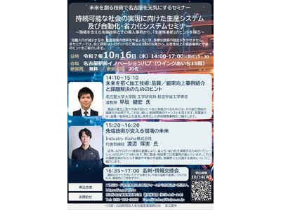 今回のテーマは「持続可能な社会の実現に向けた生産システム及び自動化・省力化システム」とし、大学や企業による実践的な取り組みについて講演を行います。
