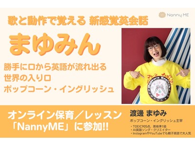 オンライン保育/レッスン「NannyME」(運営:株式会社七色、代表取締役CEO:佐々木綾香)は、歌って踊るオンライン英会話コーチ・AI英語ソングクリエイターとして親子から大人気の「まゆみん」先生を、英語レッスンのNanny(講師)として新たに迎えました。