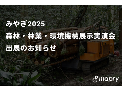 株式会社マプリィは、2025年10月5日(日)・6日(月)に開催される「みやぎ2025森林・林業・環境機械展示実演会」(第48回全国育樹祭記念行事)に出展いたします。ご来場の際は、ぜひ弊社ブースにもお立ち寄りください。