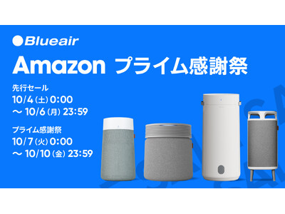 スウェーデン発のエアウェルネスブランド「Blueair(ブルーエア)」の日本総代理店、セールス・オンデマンド株式会社(本社:東京都品川区 / 代表取締役社長 室崎 肇:以下、セールス・オンデマンド)は、Amazonで10月4日(土)0時から10月6日(月)23時59分にかけて開催される「先行セール」及び、10月7日(火)0時から10月10日(金)23時59分にかけて開催される「プライム感謝祭」において、 世界基準「CADR」で最高水準の評価を獲得した*¹*²空気清浄機ブランド、Blueairの製品がお得になるビッグセールを実施いたします。