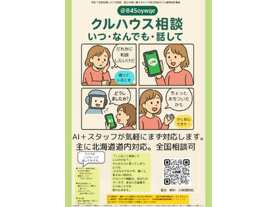 特定非営利活動法人くるくるネット(理事長:鳥山晃、室蘭市知利別町)は、令和7年度に開始したLINE相談窓口「クルハウス相談」が、登録者40人を超え、累計相談件数100件に到達したことをお知らせいたします。