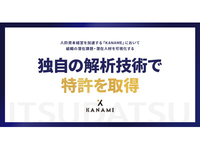 経営者特化型意識解析サービス「I AM CEO」やISO 30414/人的資本経営コンサルティングサービス等を運営する株式会社ITSUDATSU(本社:東京都港区、代表取締役Co-CEO:黒澤伶)は、独自開発した組織・人材解析ソリューション『KANAME』において、組織の潜在課題と潜在人材を同時に可視化する解析技術において特許を取得したことをお知らせいたします。