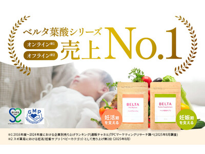 「女性のライフステージの課題を解決する」をミッションに掲げる株式会社ベルタ(本社:東京都港区、代表取締役:武川克己)が展開する「ベルタ葉酸シリーズ」は、2025年8月にスギ薬局の「妊活/妊娠サプリ(ベビーカテゴリ)」において売上No.1を記録しました。当社はすでにオンラインにおいて9年連続でNo.1*1をいただいていますが、今回、新たに店頭販売でもNo.1という評価をいただいたことで、「オンラインでも店頭でも安心してお選びいただけるブランド」であることを、多くのお客様に支持いただけるようになりました。
