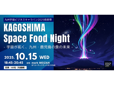 一般社団法人九州みらい共創(福岡県久留米市、代表理事:上村俊作)は、九州宇宙ビジネスキャラバン2025鹿児島の公認サイドイベントとして開催される『KAGOSHIMA Space Food Night - 宇宙が拓く、九州・鹿児島の食の未来 -』(2025年10月15日(水)・マークメイザン)に協力いたします。